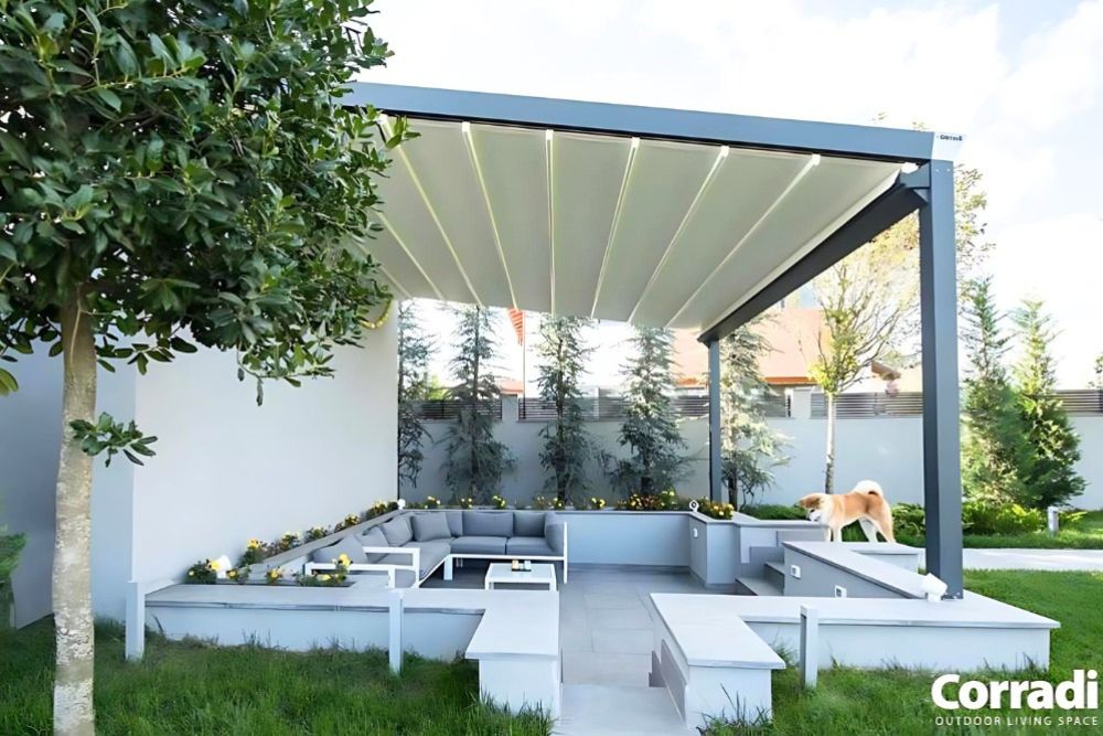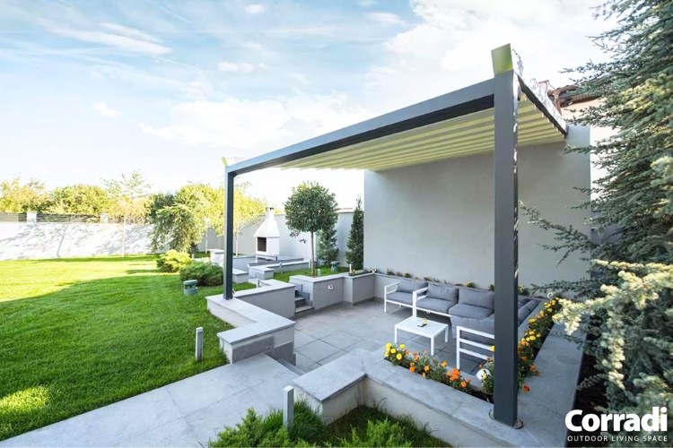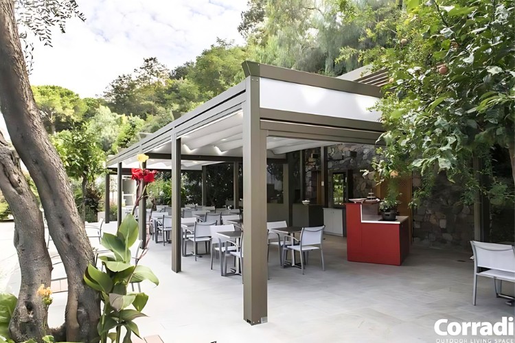 Las soluciones de Corradi realzan cada entorno y son adecuadas tanto para espacios domésticos como públicos. Sin embargo, cada necesidad específica tiene un modelo ideal, como B-Space, una pérgola para terrazas capaz de cubrir grandes superficies de manera estable y elegante, siendo perfecta para el sector comercial.